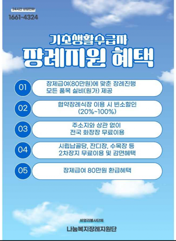 기초생활수급자 장례비용 지원 장례식장 혜택